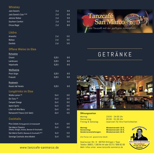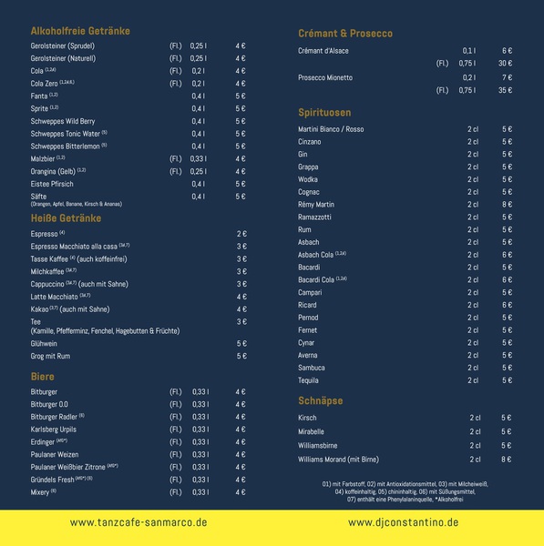 Zusatzstoffe & Allergene entnehmen Sie bitte aus unserer Getränkekarte